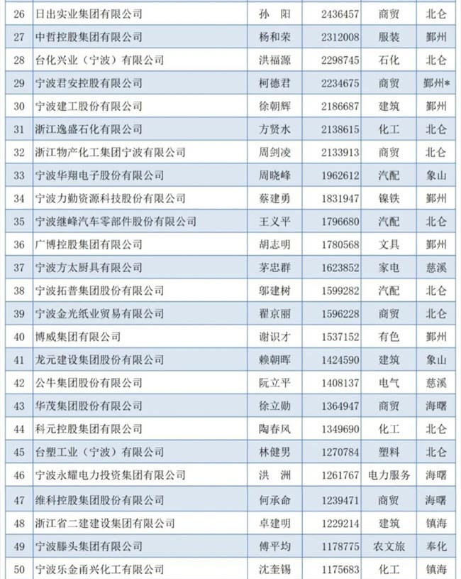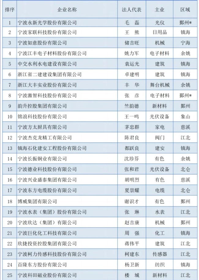 2023寧波市競爭力企業(yè)百強(qiáng)榜單