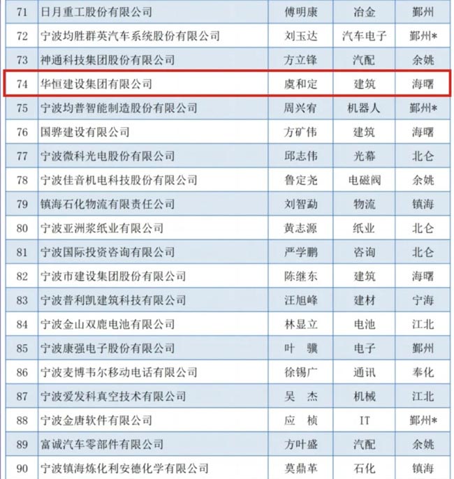 【喜訊】2023寧波企業(yè)百強(qiáng)榜公布!華恒蟬聯(lián)“寧波市綜合企業(yè)百強(qiáng)”“寧波市競爭企業(yè)百強(qiáng)”-公司要聞-華恒建設(shè)集團(tuán)有限公司