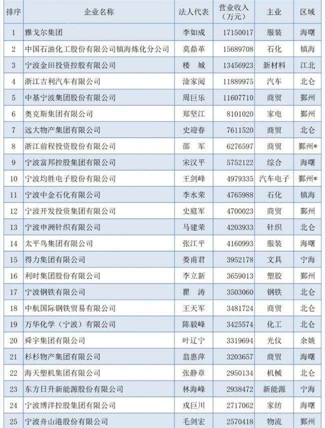 2023年寧波市綜合企業(yè)百強(qiáng)榜單