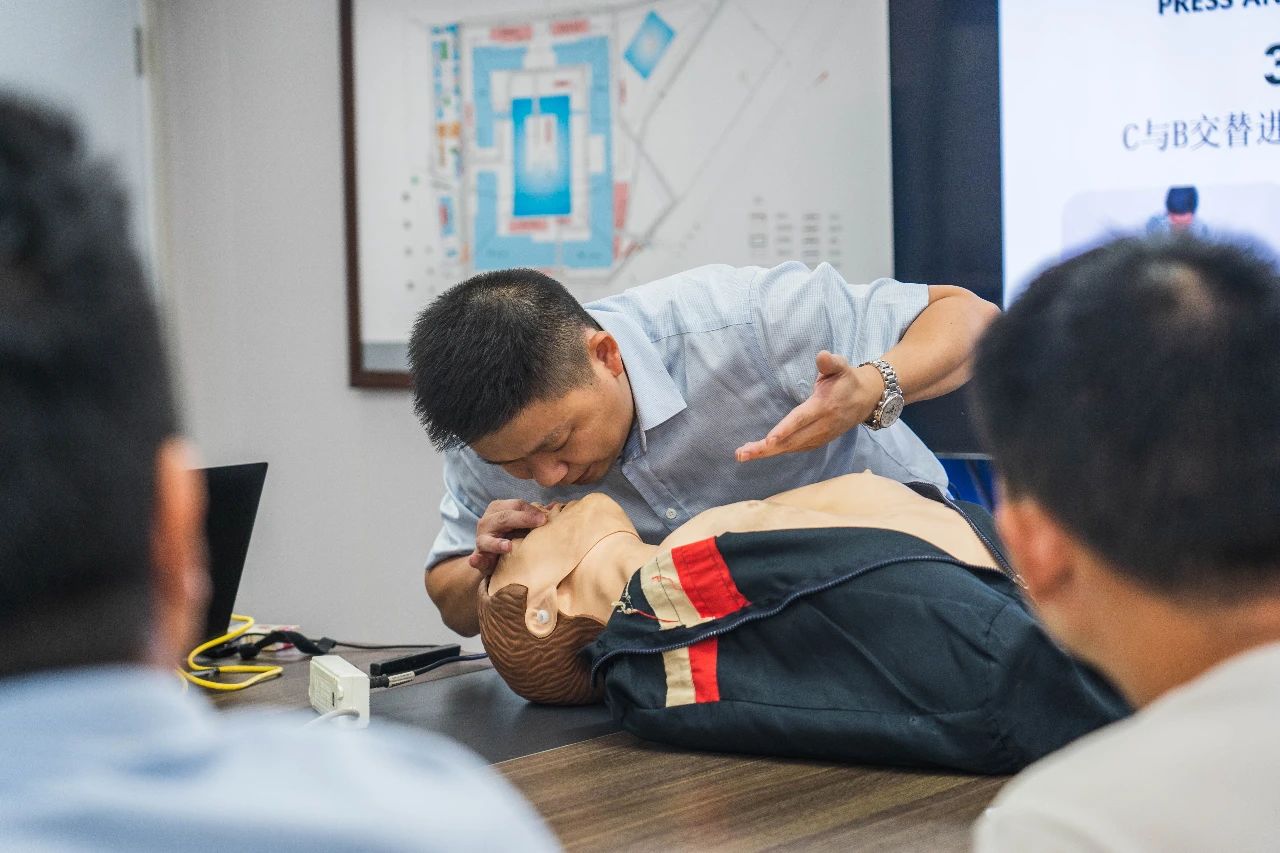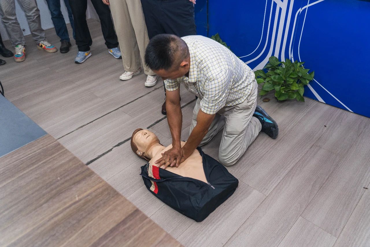 現(xiàn)場演示環(huán)節(jié),劉老師著重介紹了心肺復(fù)蘇術(shù)的操作要領(lǐng),強(qiáng)調(diào)“黃金四分鐘”的重要性,大家積極參與互動(dòng)體驗(yàn),將理論知識(shí)和實(shí)踐相結(jié)合,更好地對(duì)應(yīng)急救護(hù)知識(shí)融會(huì)貫通,現(xiàn)場學(xué)習(xí)氣氛濃厚。
