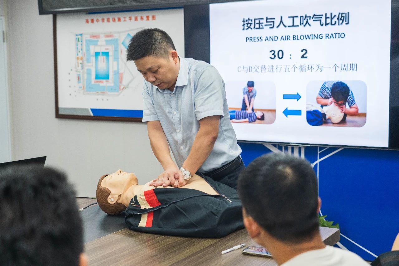 我司承建的海曙中學(xué)項(xiàng)目部臨時(shí)黨組織書記許婕在了解到項(xiàng)目部的工友們都希望學(xué)習(xí)急救知識(shí),提高突發(fā)事件的應(yīng)急處置能力后,9月4日晚上,在海曙中學(xué)項(xiàng)目部舉辦了一場培訓(xùn)+實(shí)操+競賽的主題活動(dòng),開啟工地賦能新篇章。