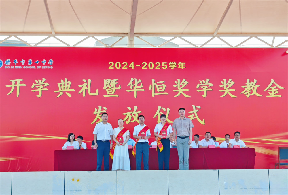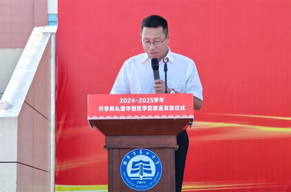 2024年9月9日,在第40個(gè)教師節(jié)來(lái)臨之際,樂(lè)平十中隆重舉行2024-2025學(xué)年開(kāi)學(xué)典禮暨首屆“華恒獎(jiǎng)學(xué)獎(jiǎng)教金”發(fā)放儀式,出席儀式的有校領(lǐng)導(dǎo)班子成員及十中全體師生。儀式由教師余泳兒主持。